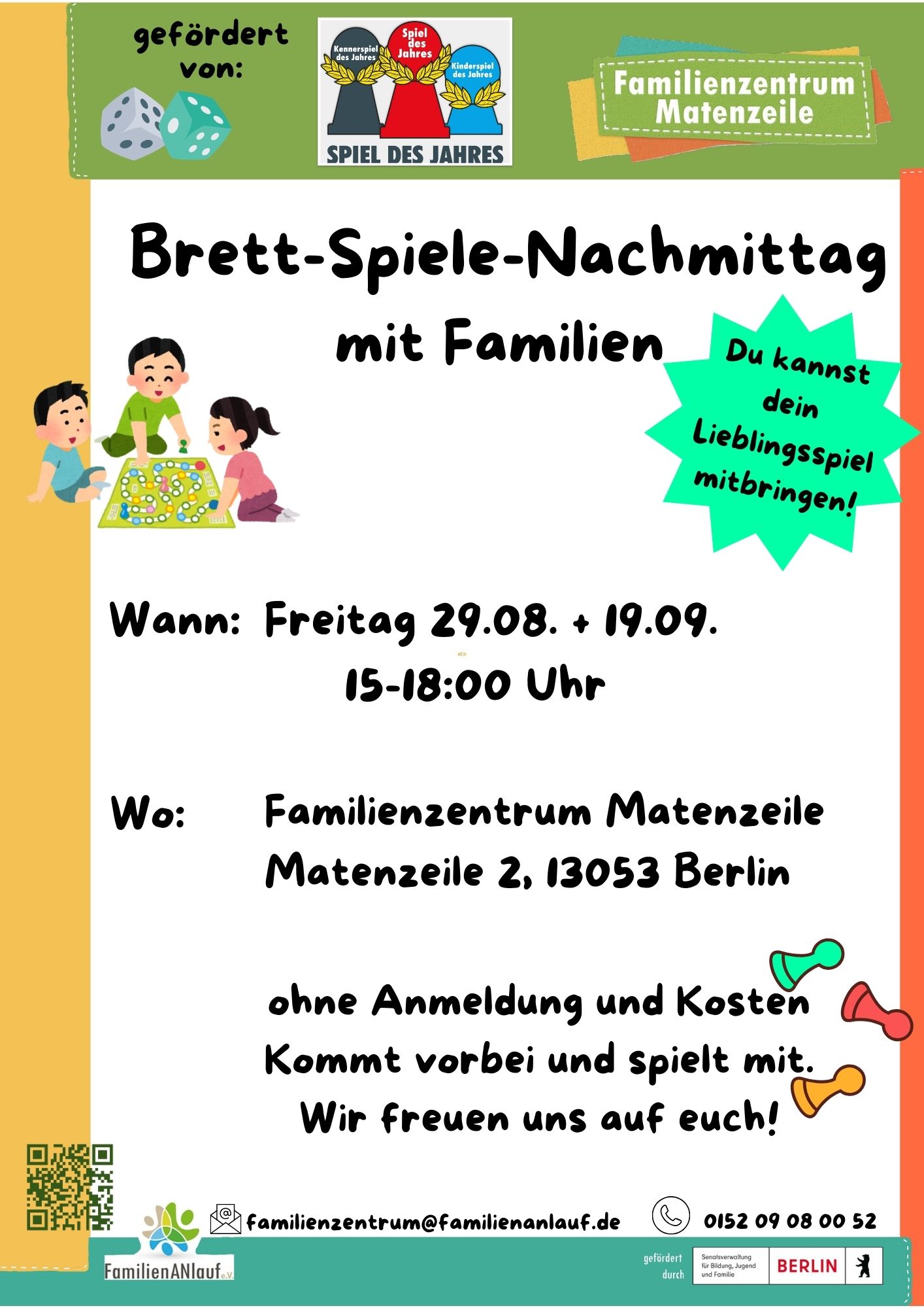 Von 15.30 bis 17.30 Uhr könnt ihr Euch im Familienzentrum treffen, spielen und austauschen.