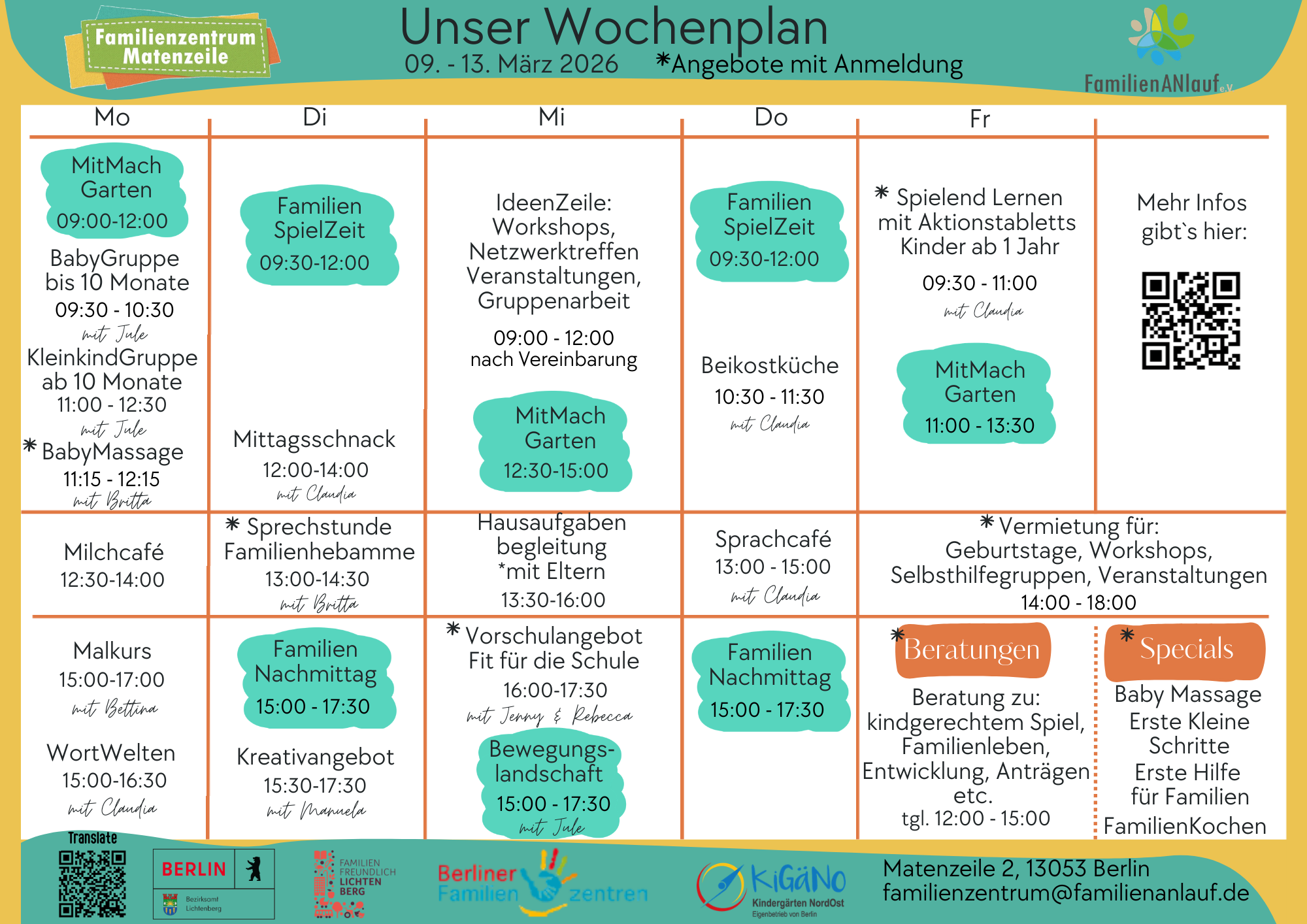 Regelmäßige Angebote vom Familienzentrum Matenzeile